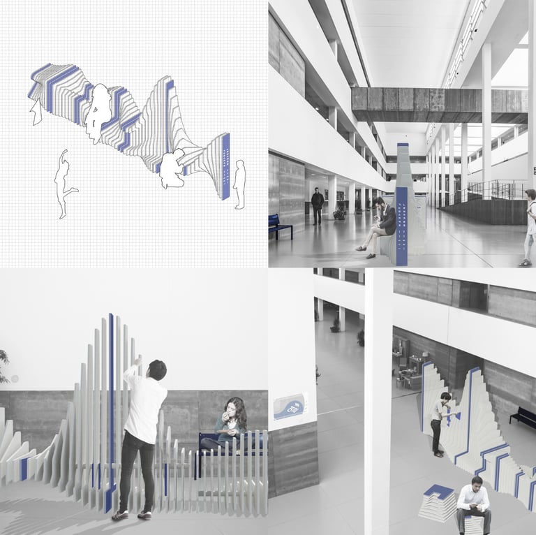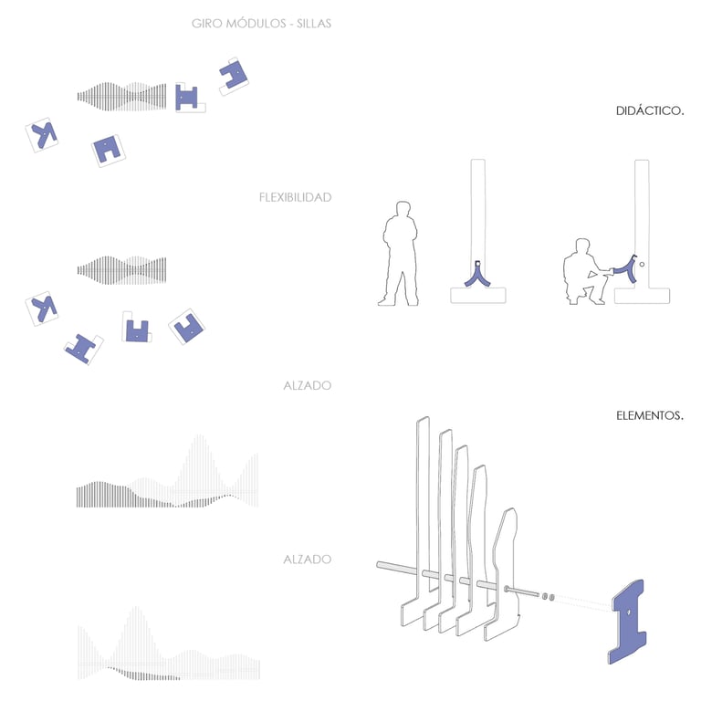 Inspired by the Hangul alphabet, this bench is a multifunctional and modular wooden piece designed for both educational and decorative purposes. Created for a festival centered on the Korean alphabet and developed in collaboration with the University of Málaga, the project highlights individual phonemes while offering flexible configurations suited to different learning and exhibition environments. The design was developed with careful consideration of material efficiency, fabrication constraints, and cost-effective construction, resulting in a functional and expressive piece that balances creativity with practical feasibility.