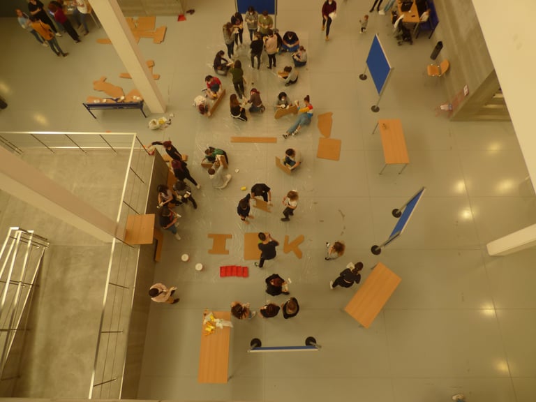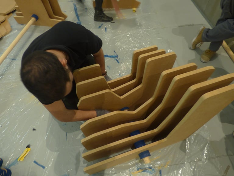 Inspired by the Hangul alphabet, this bench is a multifunctional and modular wooden piece designed for both educational and decorative purposes. Created for the University of Málaga, it highlights individual phonemes while offering flexible configurations suited to different learning environments. The design was developed with careful consideration of material efficiency, fabrication constraints, and cost-effective construction, resulting in a functional and expressive piece that balances creativity with practical feasibility.