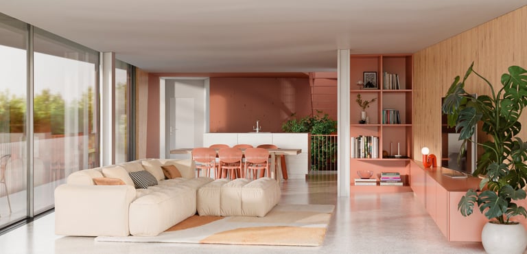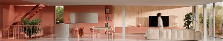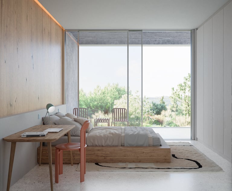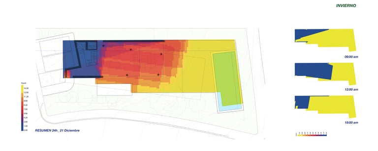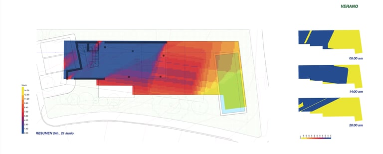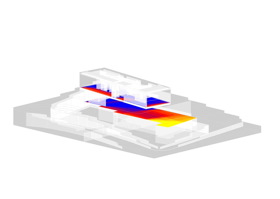 A compact composition of two stacked volumes, where the upper one is precisely rotated through parametric design to achieve optimal solar performance—providing summer shading and winter sunlight.